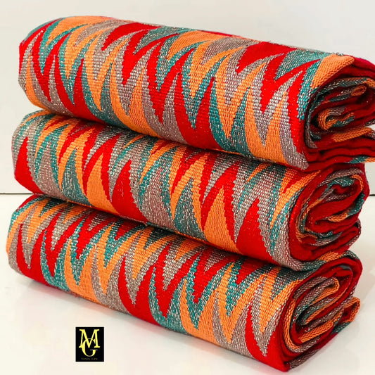 Shimmering Orange background. MG Kente Premium quality Kente Cloth boast of the higher status patterns...