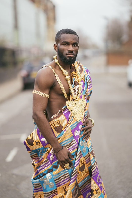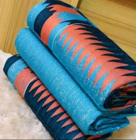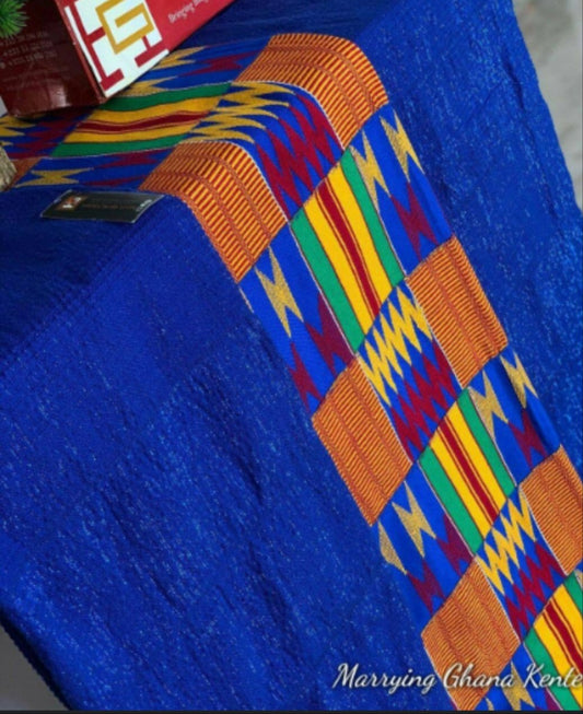 4 Yard Traditional Wrap. 2 Yard extra Kente cloth in addition. 2 yard blue matching...
