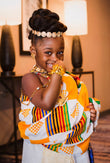 Kente comes from the word kenten, which means basket in the Asante dialect of Akan. Akans refer to kente as nwentoma, meaning woven cloth. It is an Akan royal and sacred cloth worn only in times of extreme importance and was the cloth of kings. Over time, the use of kente became more widespread.
