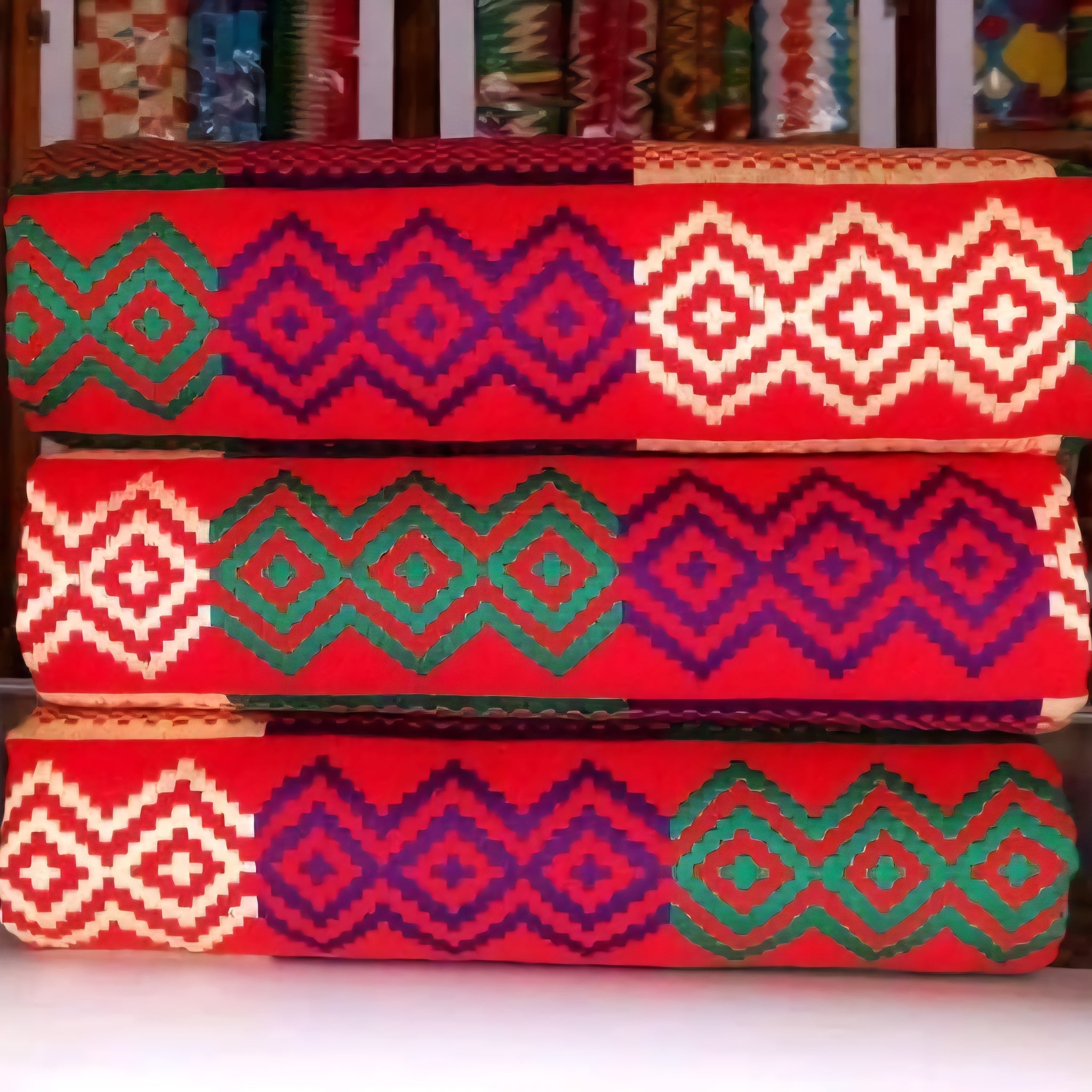 This fabric is the original Kente cloth and we cut no corners as many do to raise their profit by using a cheaper china thread that has flooded the market, where as we offer a guarantee for the real fabric and unlike many others, you get the design you see in the image and not something one may think is similar as we boost having the top weavers and designers in Ghana.