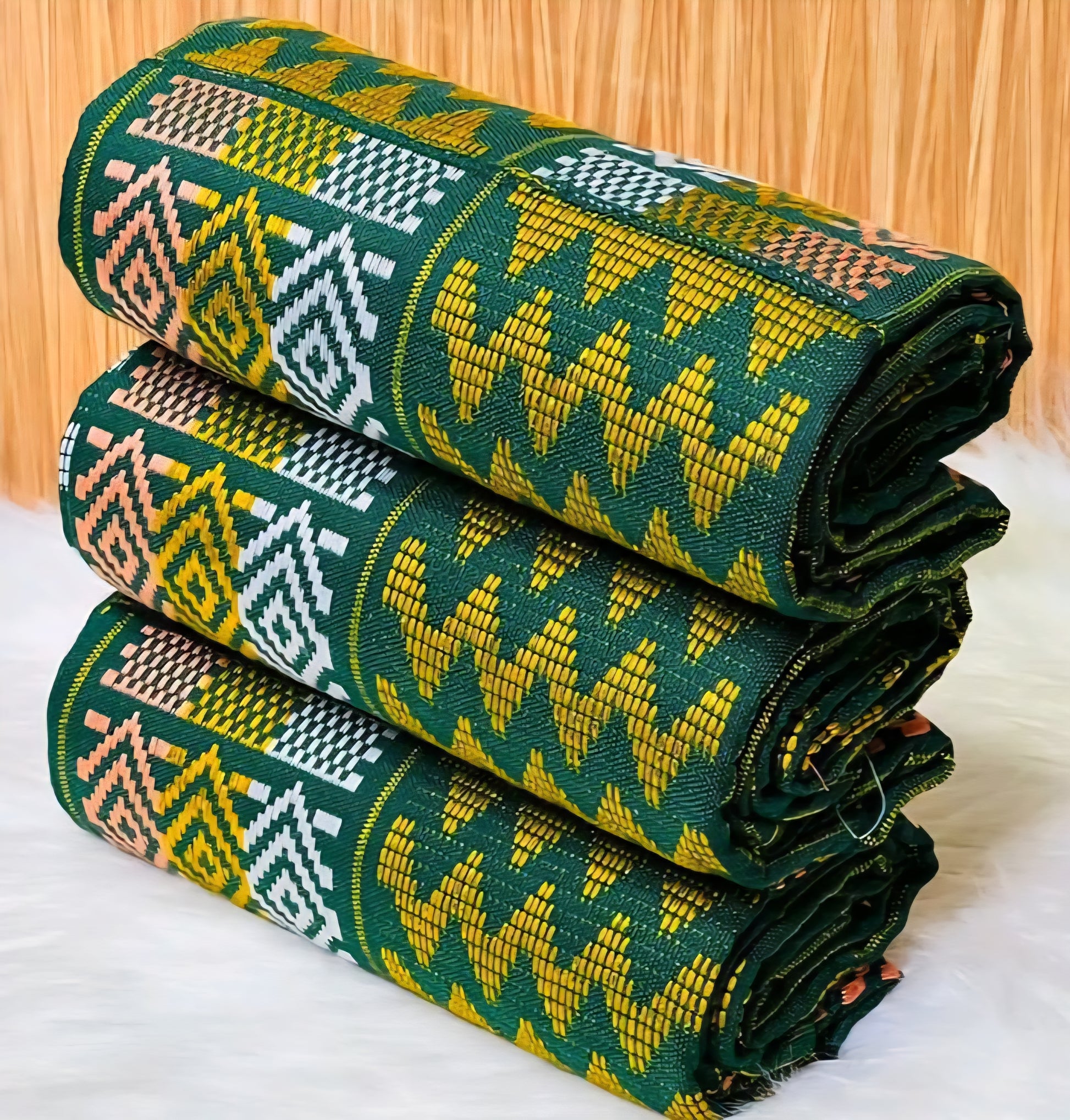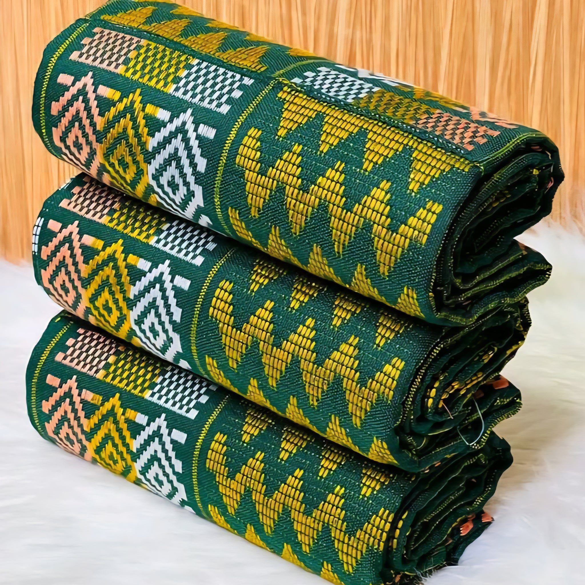 This fabric is the original Kente cloth and we cut no corners as many do to raise their profit by using a cheaper china thread that has flooded the market, where as we offer a guarantee for the real fabric and unlike many others, you get the design you see in the image and not something one may think is similar as we boost having the top weavers and designers in Ghana.