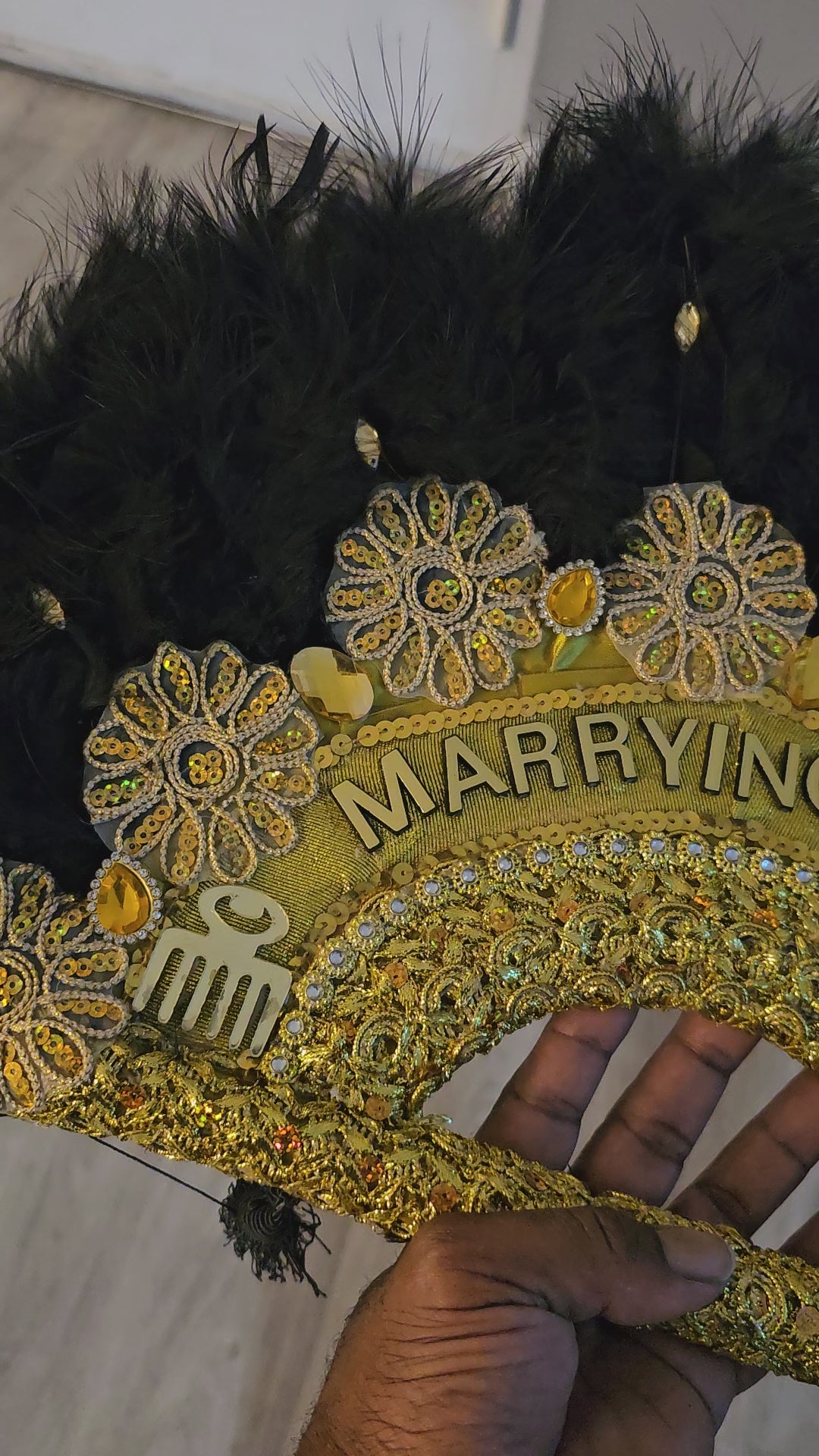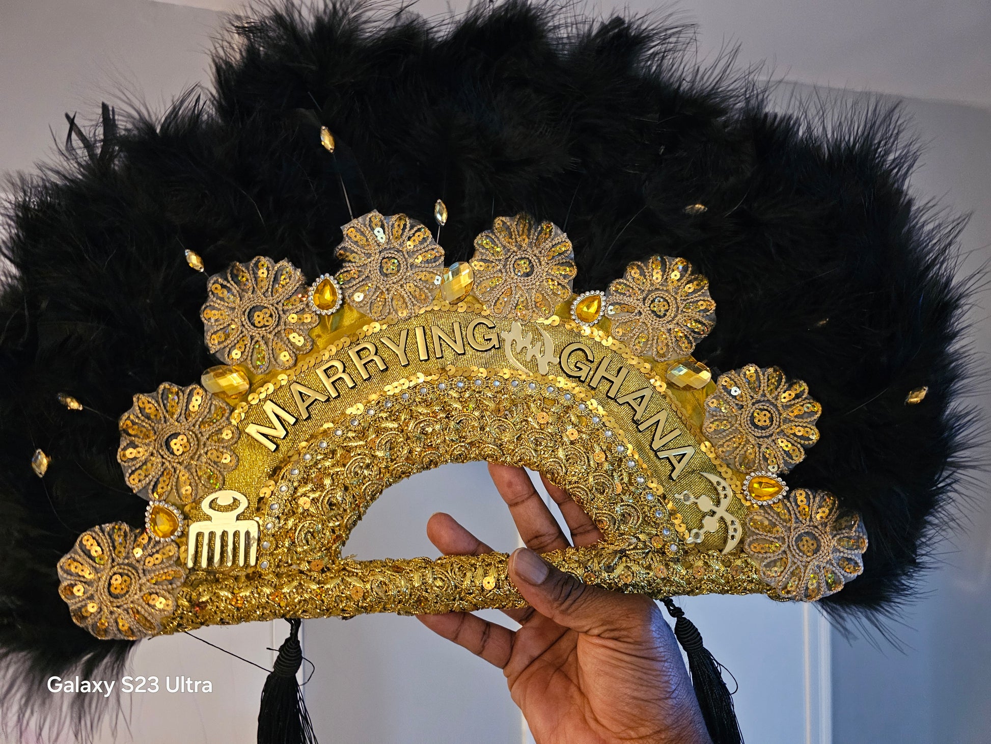 MG Blaclk & Gold Beautiful Handmade Wedding Fan Accessories AS204