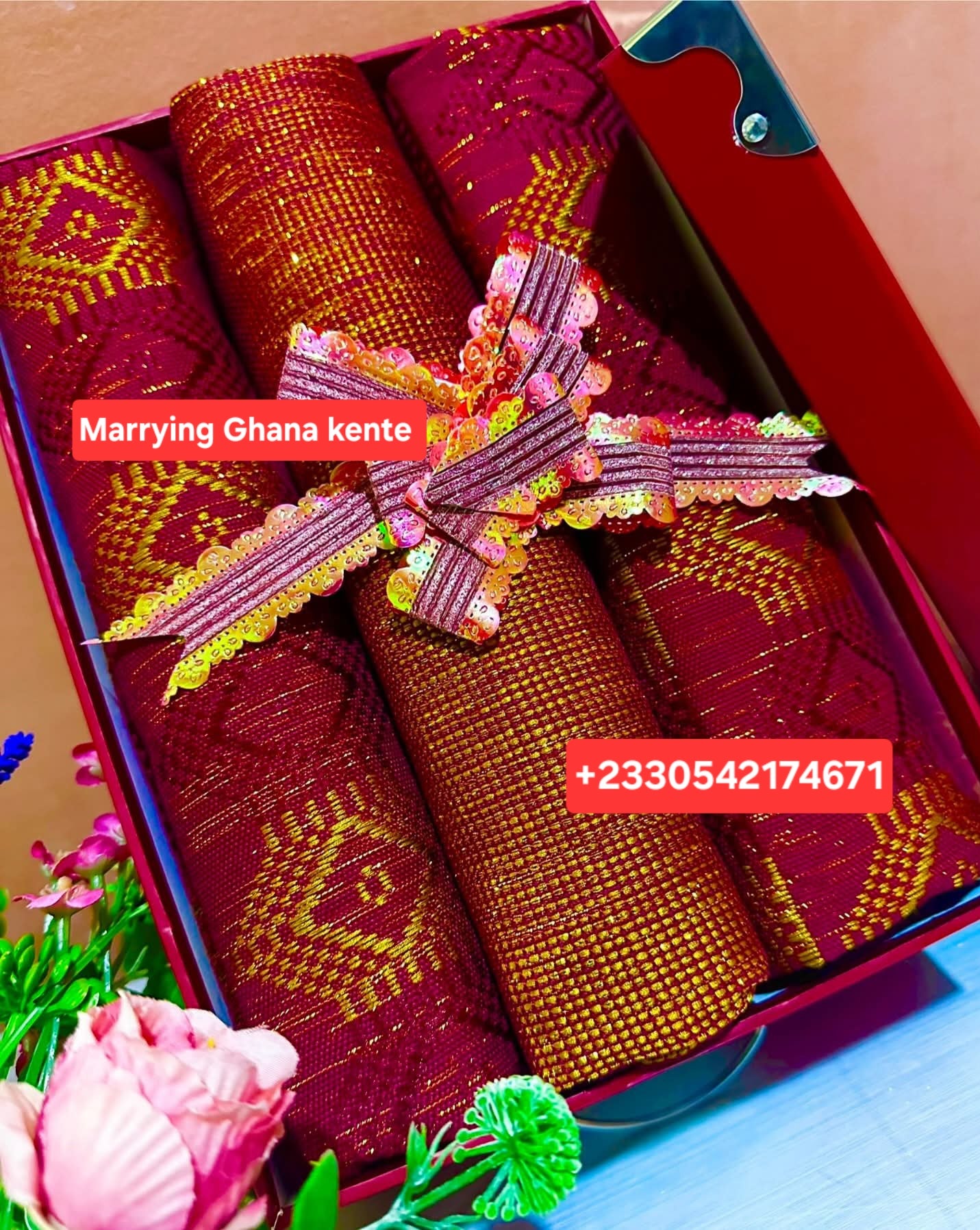 This fabric is the original Kente cloth and we cut no corners as many do to raise their profit by using a cheaper china thread that has flooded the market, where as we offer a guarantee for the real fabric and unlike many others, you get the design you see in the image and not something one may think is similar as we boost having the top weavers and designers in Ghana.