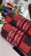 H.G Kente collection is extra special. This Kente boast of premium thread and intricate weaving, done to bring the best quality Kente in the world that specializes in many unique styles with a touch of Silk that is optional but brings a incomparable look that is not found anywhere else. These style are mostly customized from the minds of Ghana's top designer's and are a mixture of centuries old styles mixed with a modern edge to them.